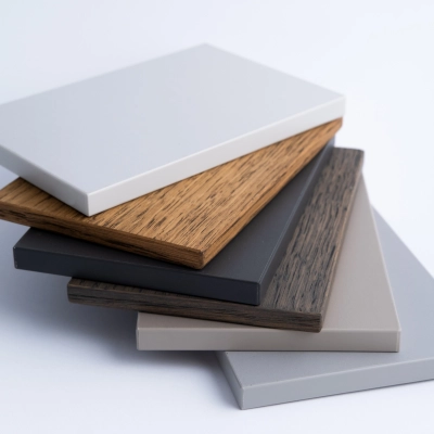 Praktilise hoiustamisruumi loomisel on võimalik kombineerida mitmesuguseid materjale, sealhulgas melamiini, spooni, värvitud MDF-i, klaasi ja peeglit.